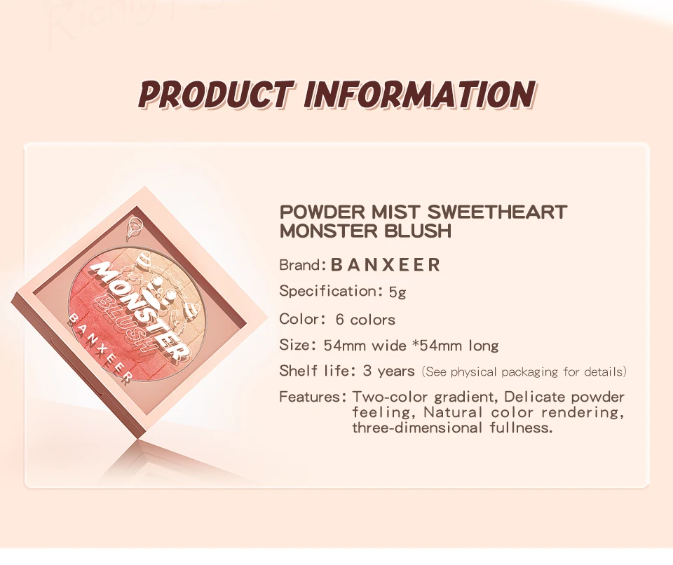 Home Accessories BANXEER Blush Pallet 6 Colors Embossed