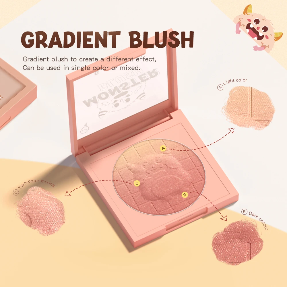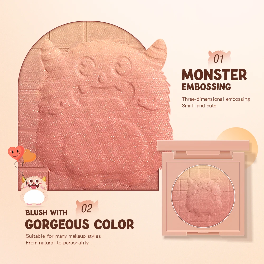 BANXEER 6 Colors Embossed Gradient Blush Pallet Soft Tint Cream Blush High Pigment Face Pink Shining Shadow Makeup Powder