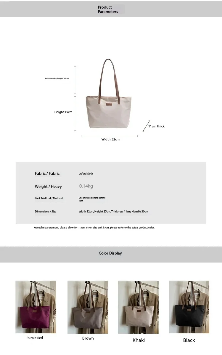 Casual Women's Oxford Cloth Shoulder Bags College Commuter Ladies Waterproof Tote Shopping Bag Large Capacity Female Handbags