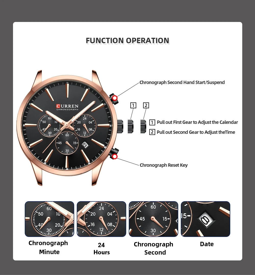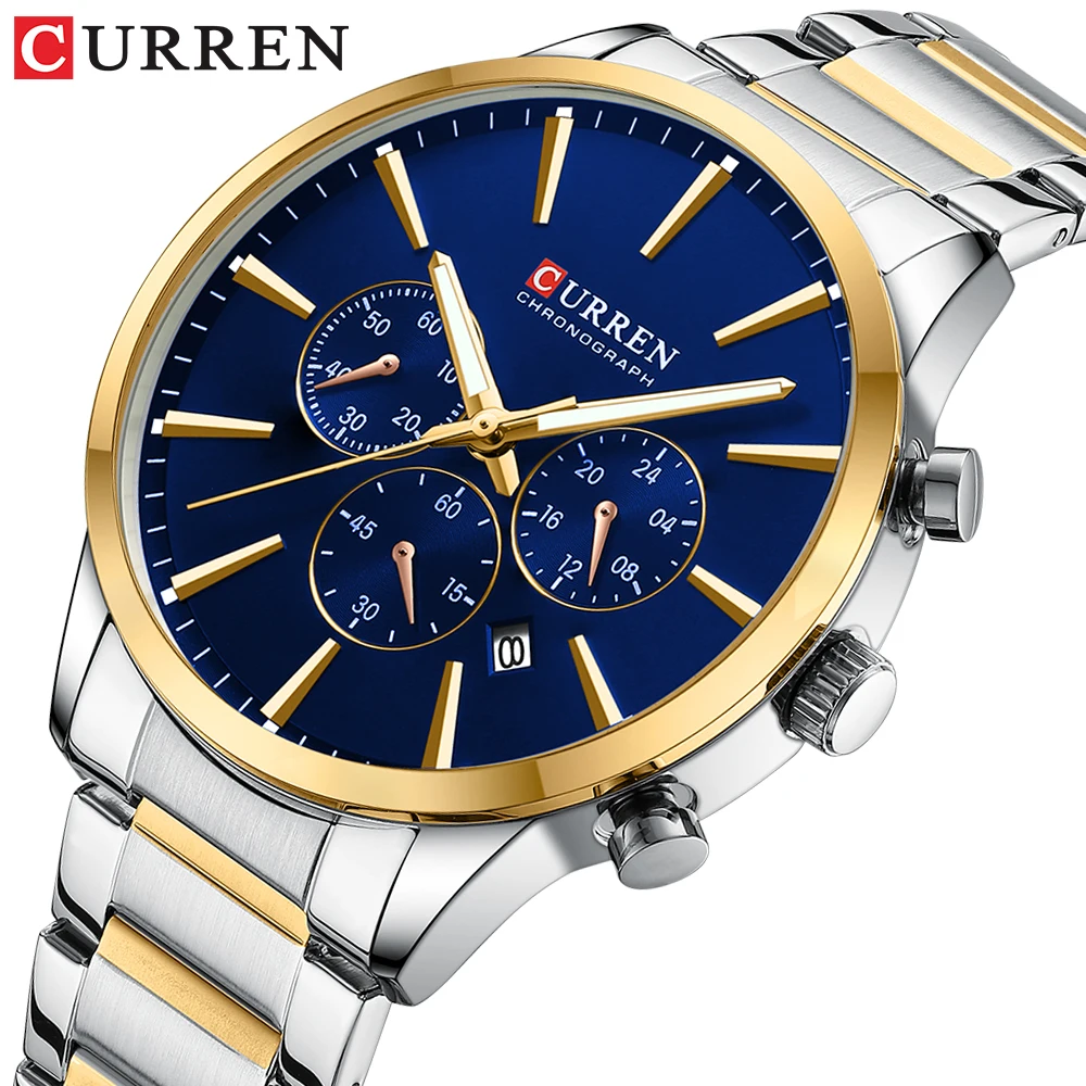 CURREN Watch Quartz Male watches Fashion Chronograph Clock Mens Gift Casual Stainless Steel Wristwatch