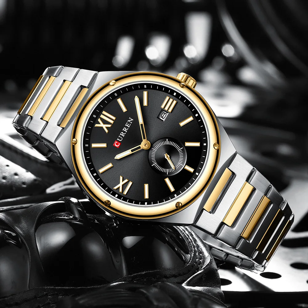 CURREN Fashion Men's Watch with Stainless Steel Strap Simple Business Quartz Wristwatch for Male Luminous Hands Clock