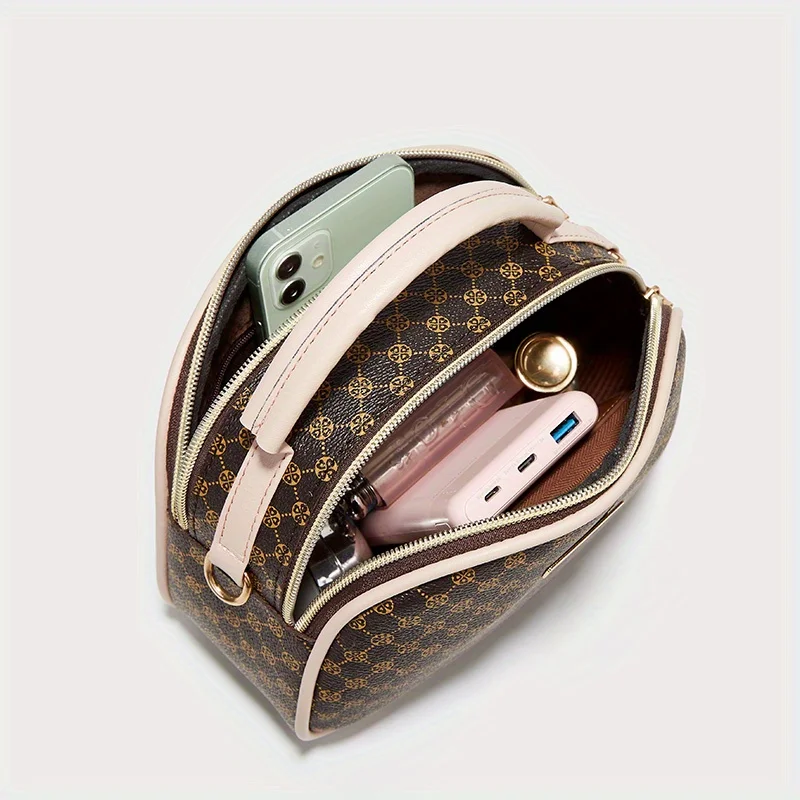 Double zipper polka dot printed bag, women's shoulder bag, hand-held crossbody bag
