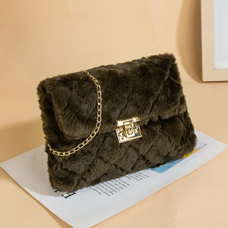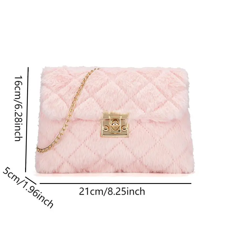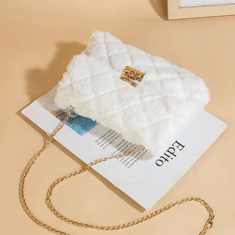 Simple Solid Color Plush Women's Shoulder Bag Fashion Chain Fake Fur Ladies Crossbody Bags Sweet Casual Female Handbags Purse