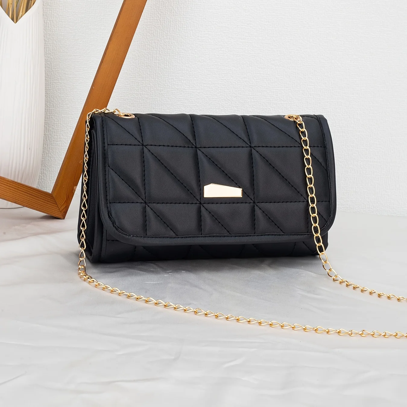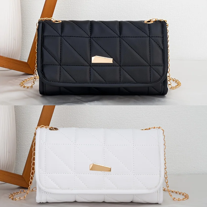 Geometric embroidered shoulder bag, solid color chain crossbody bag, fashionable and simple bag