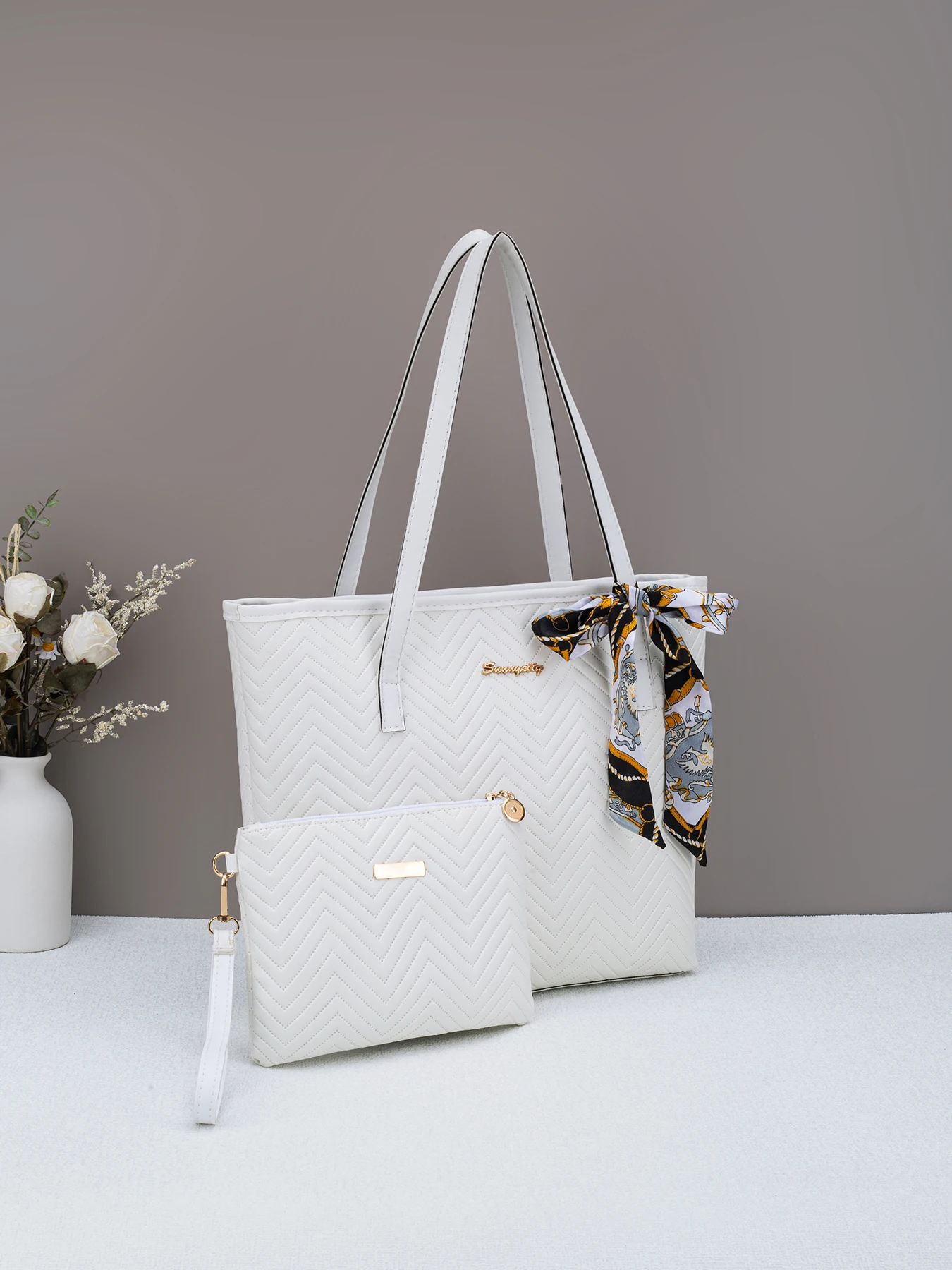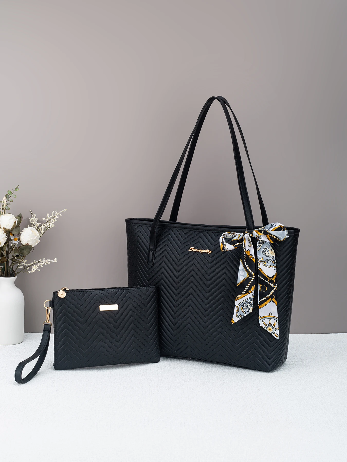 Ladies' wave patterned embroidered shopping bag, high-quality handbag for work and commuting