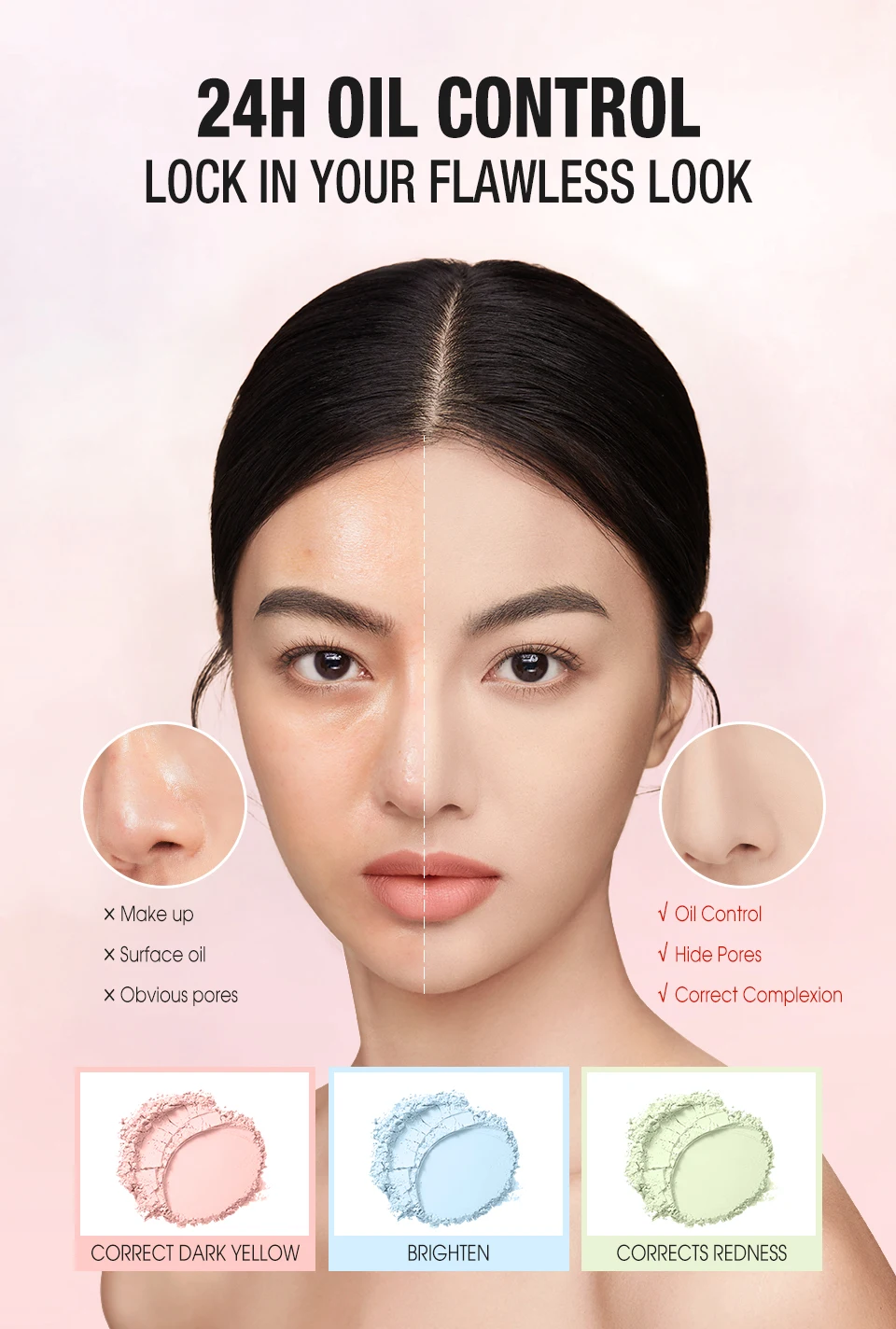 O.TWO.O Face Loose Powder 24h long-lasting Oil-control Matte Finish Lightweight Natural Poreless Setting Powder Face Makeup