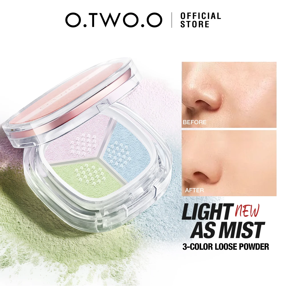 O.TWO.O Face Setting Powder Cushion Natural 3 Colors 24h Oil-control Matte Waterproof Anti-scratch Conceal Makeup Pressed Powder