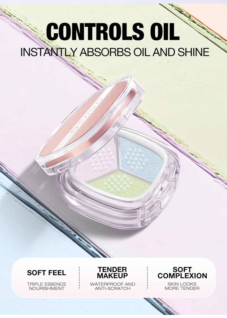 • Instantly absorbs oil and shine, controls oil and locks in makeup