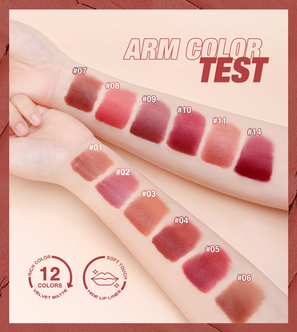 O.TWO.O Velvet Matte Lipstick Lightweight Liquid Lipstick Cosmetics Non Sticky Lip Glaze Waterproof Long Lasting Lip Tint Makeup