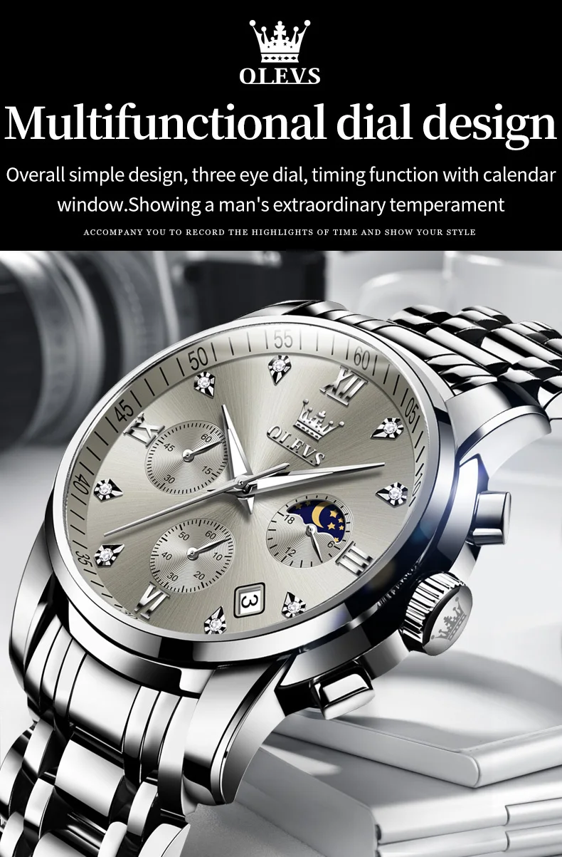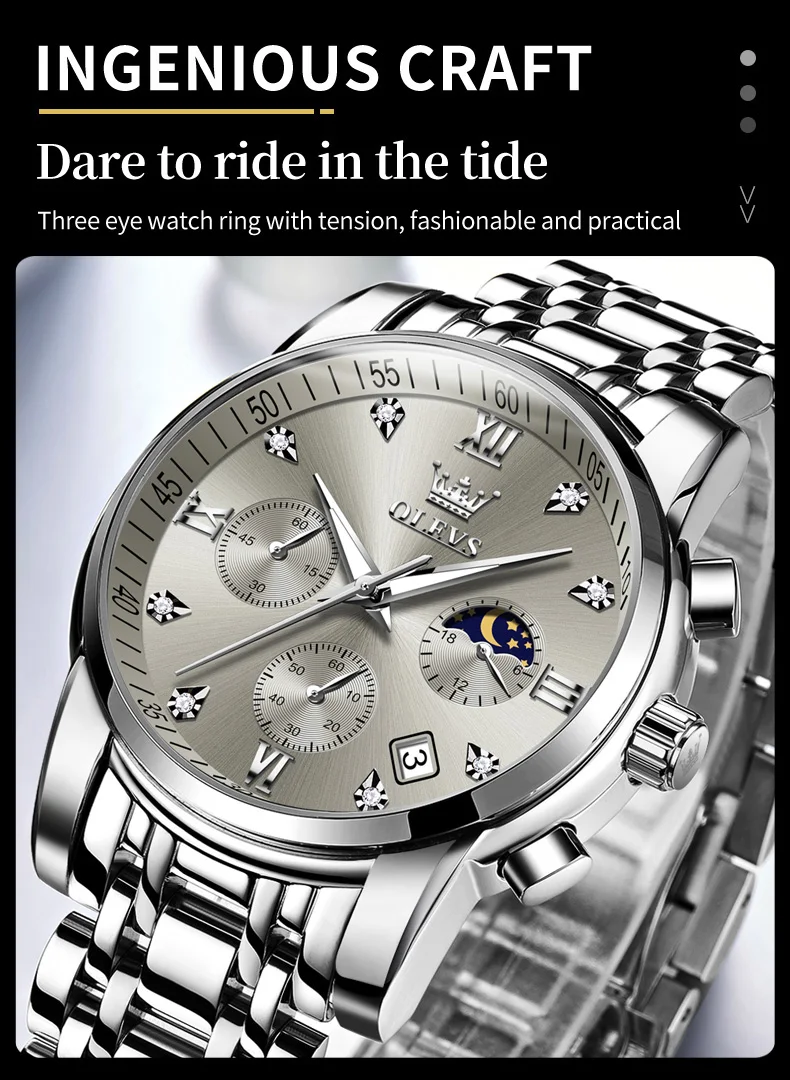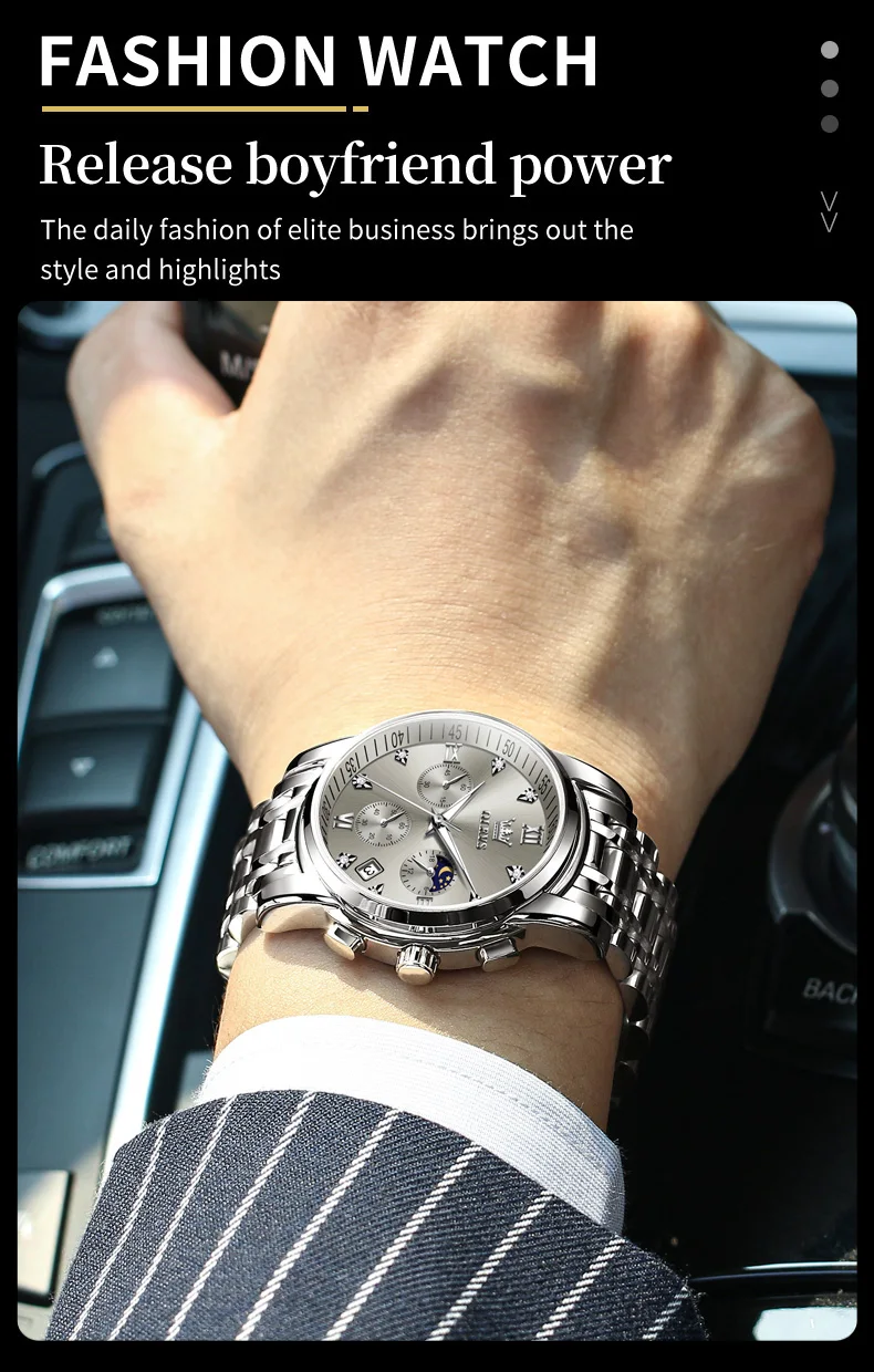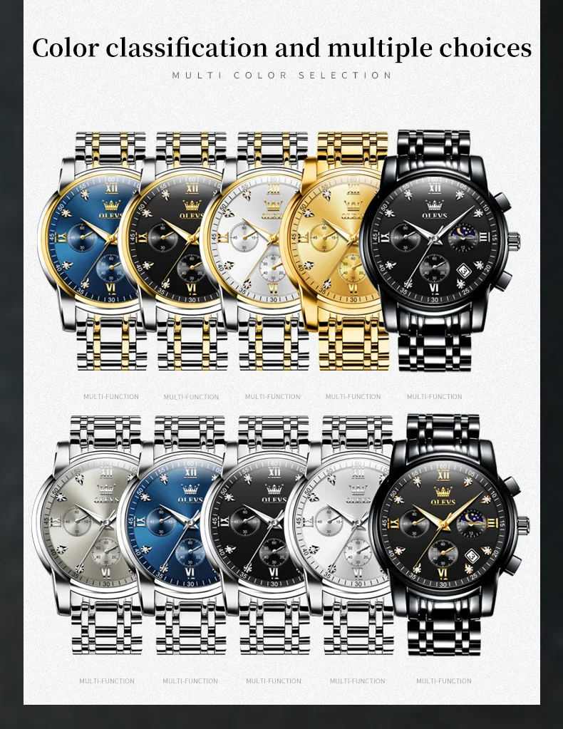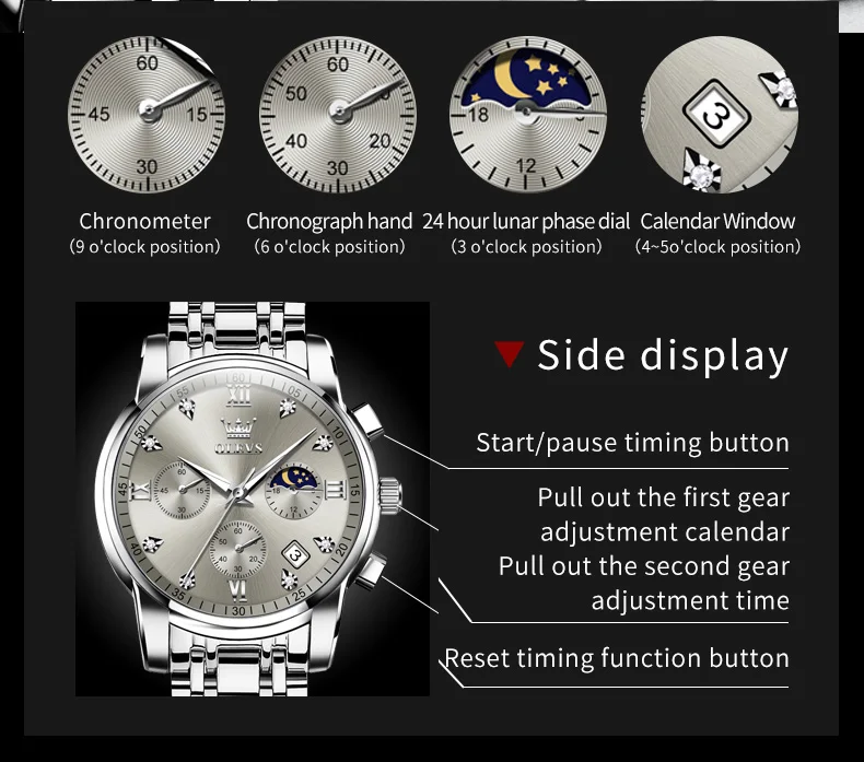 - Feature: Shock Resistant,Luminous,Chronograph,Complete Calendar,Moon Phase,Multiple Time Zone,Water-Resistance,swim,Luminous Hands