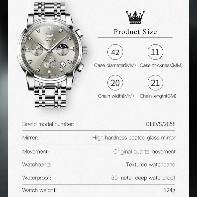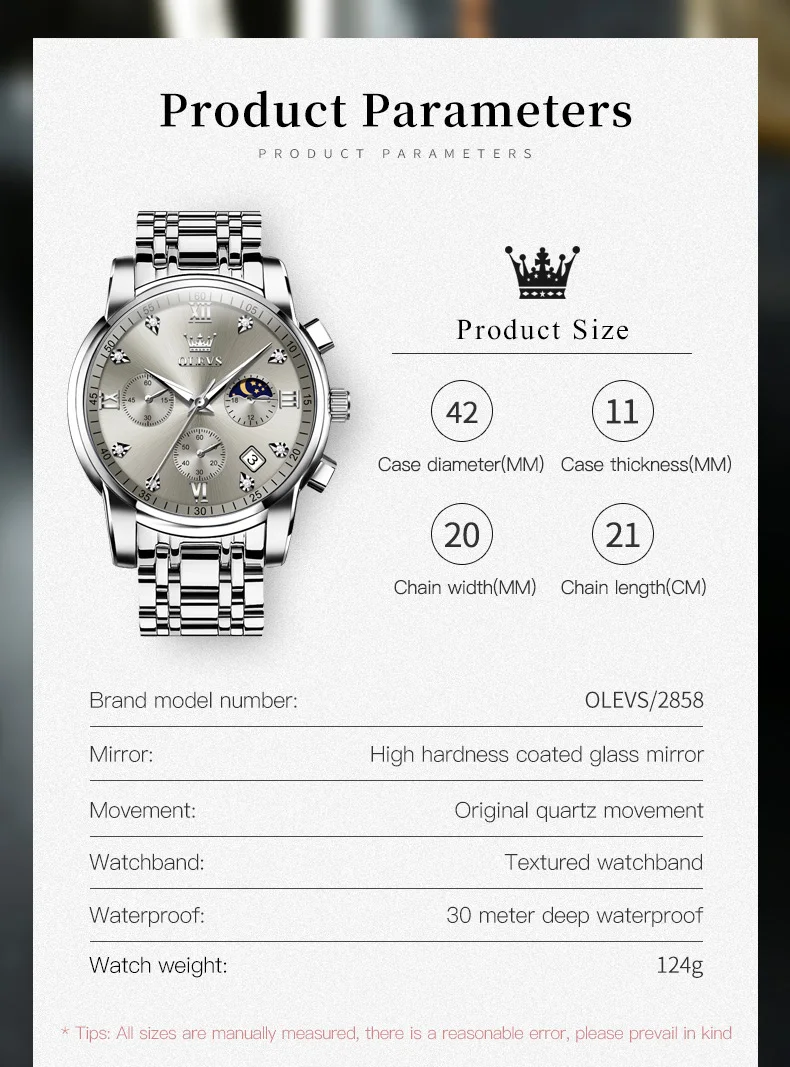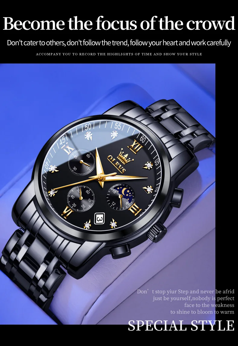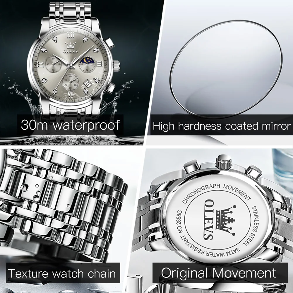 - Feature: Shock Resistant,Luminous,Chronograph,Complete Calendar,Moon Phase,Multiple Time Zone,Water-Resistance,swim,Luminous Hands