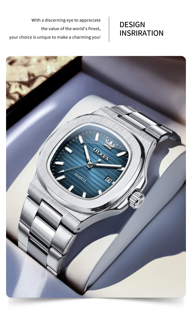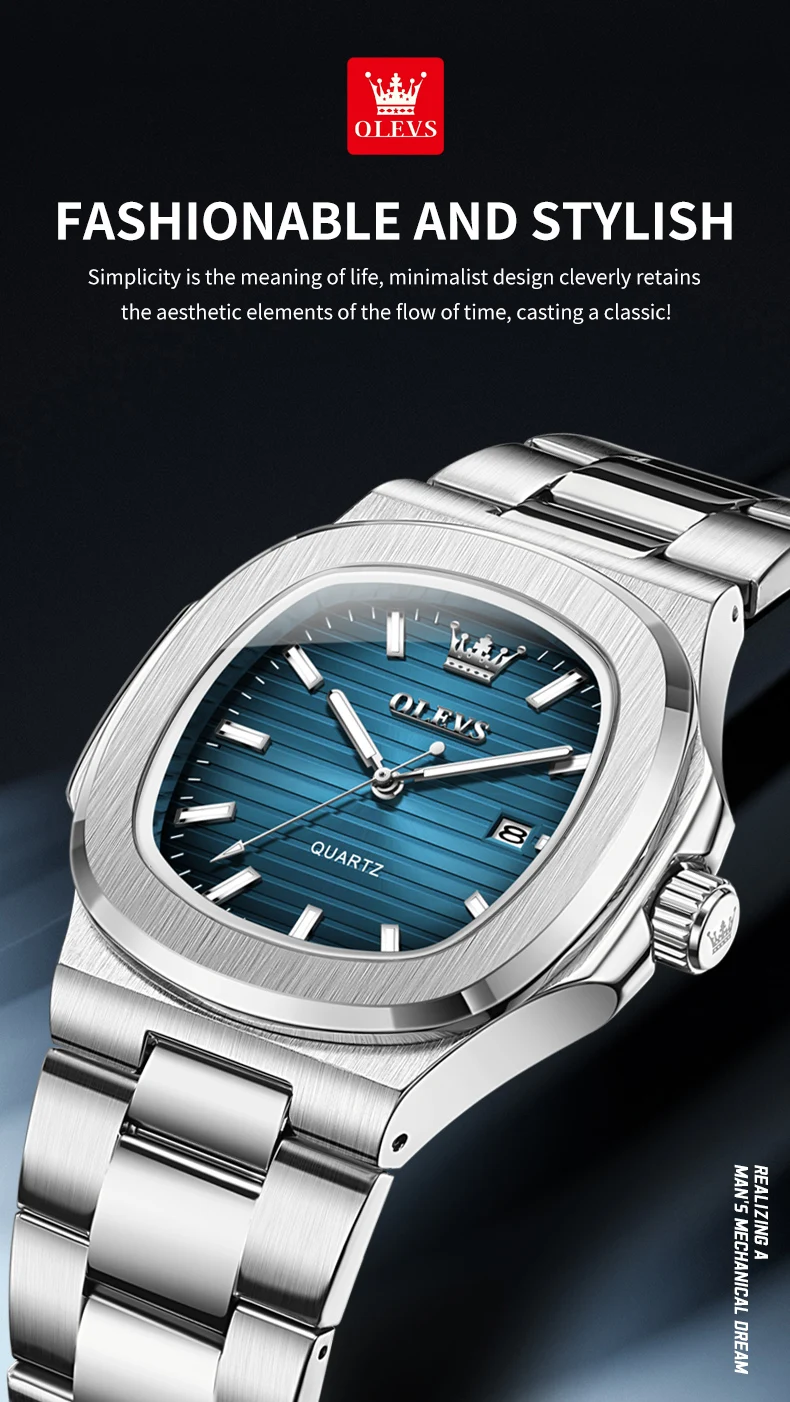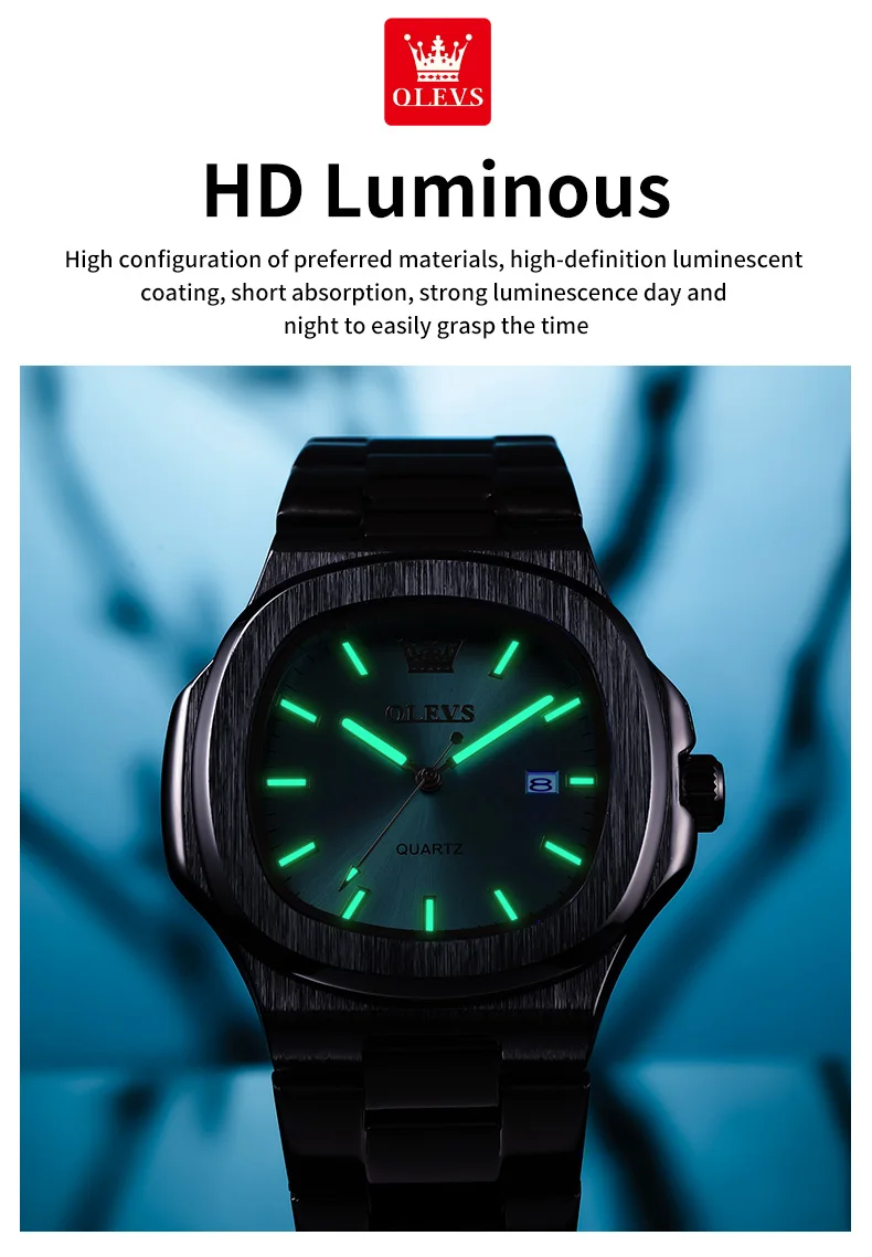 OLEVS 3696 New Men Watch Fashion Simple Calendar Waterproof Stainless Steel Square Quartz Watch Top Luxury Brand Men Watch Reloj