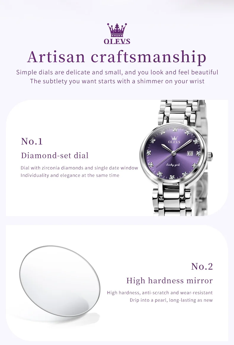 OLEVS 5575 Women Watch Fashion Luxury Elegant Diamond Roman Scale Watch Exquisite Purple Waterproof Watch Original Quartz Watch