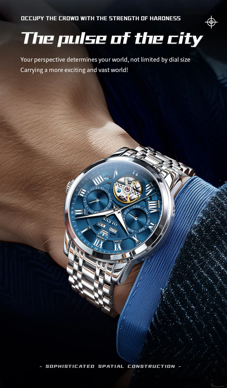 • Feature: Skeleton,Luminous,Shock Resistant,Complete Calendar,Multiple Time Zone,Week Display