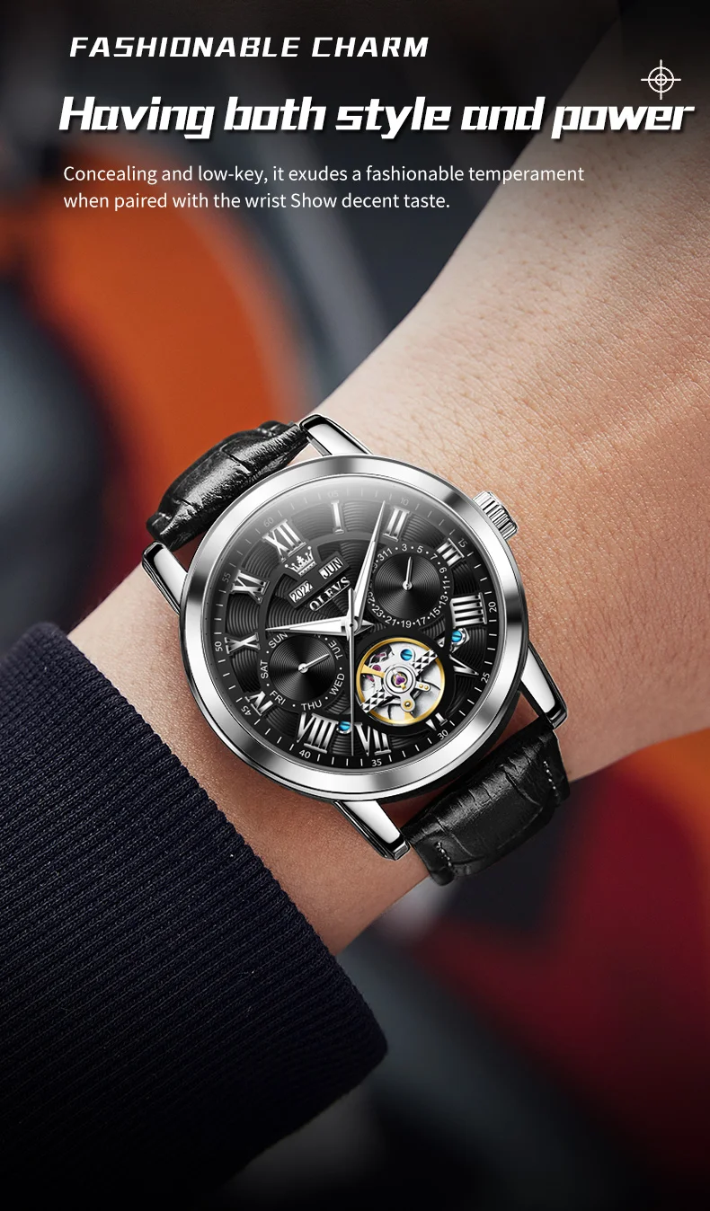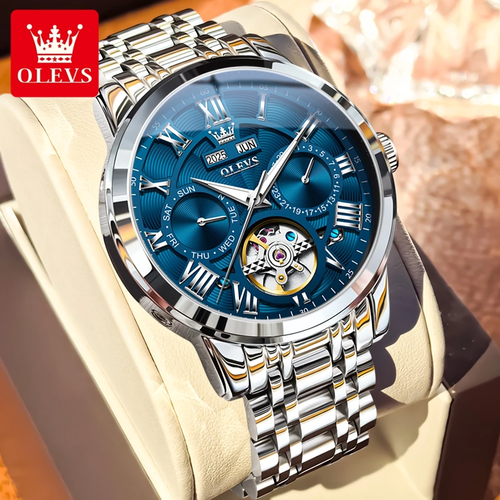 OLEVS 6668 Men Watch Luxury Brand Fully Automatic Mechanical Watch HD Roman Scale Waterproof Calendar Hollow Men Formal Watch