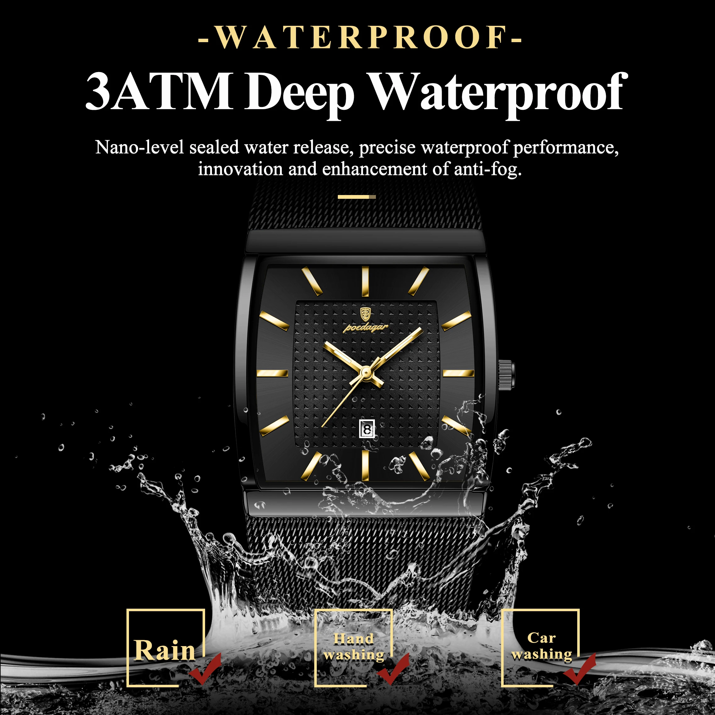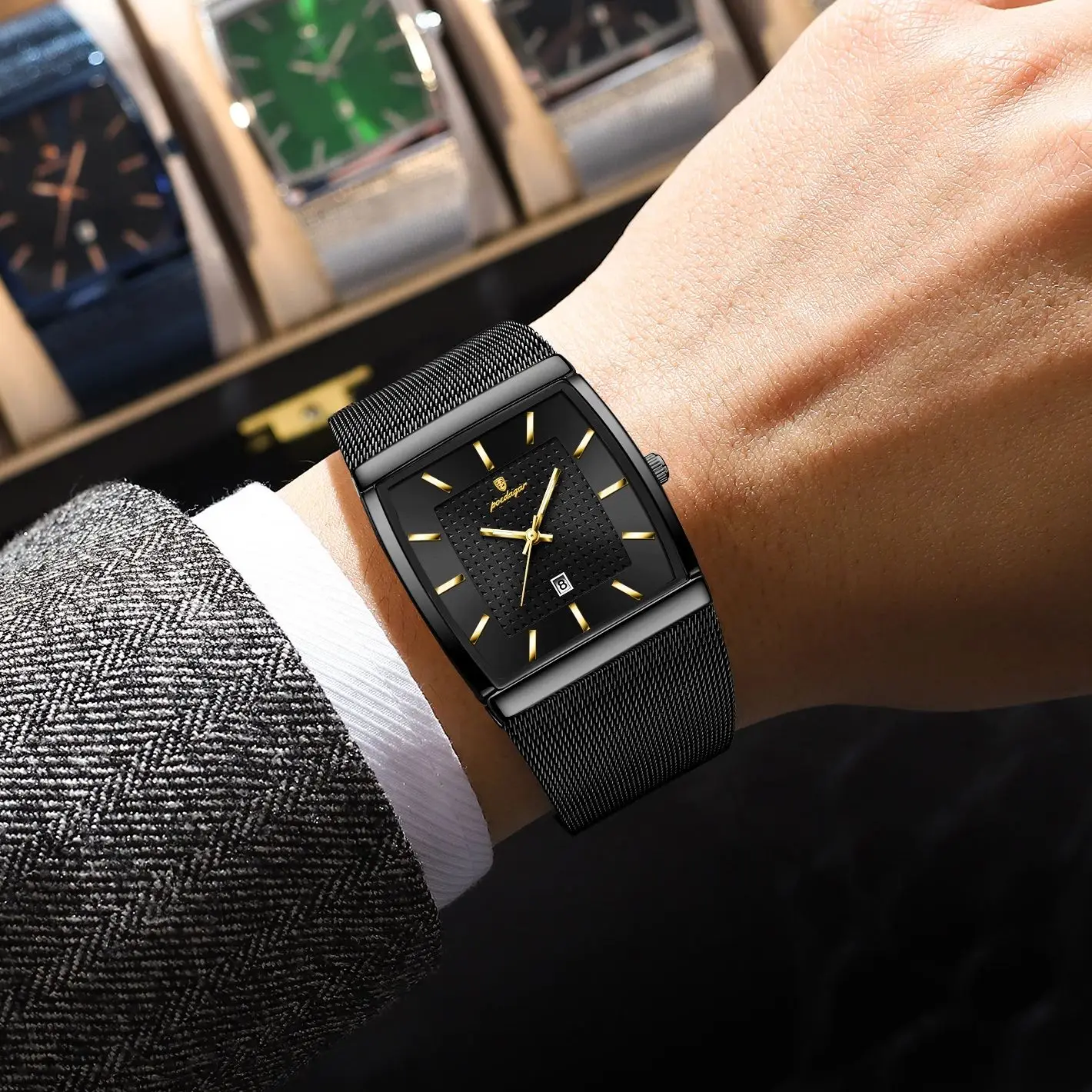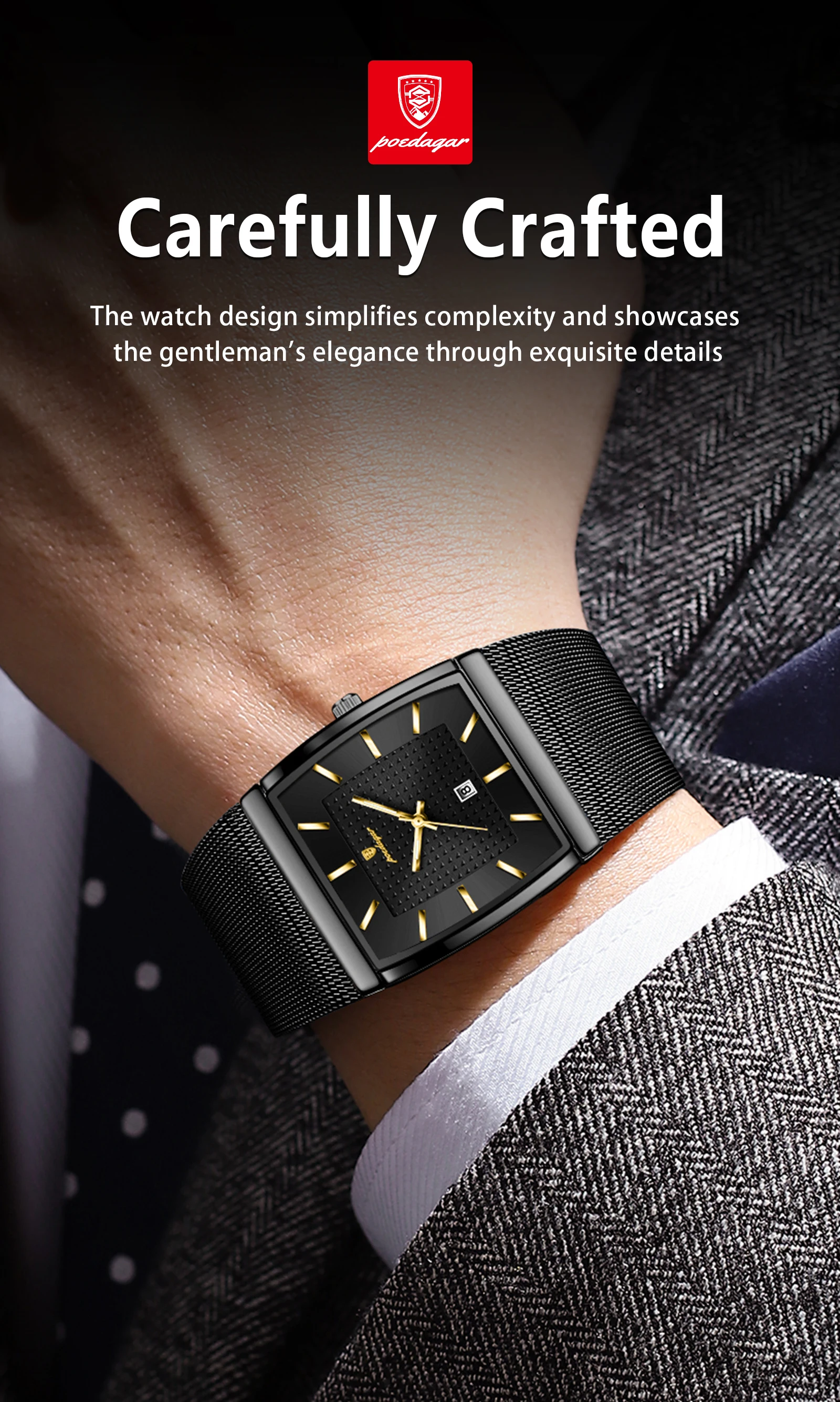 POEDAGAR Square Fashion Man Watch Stainless