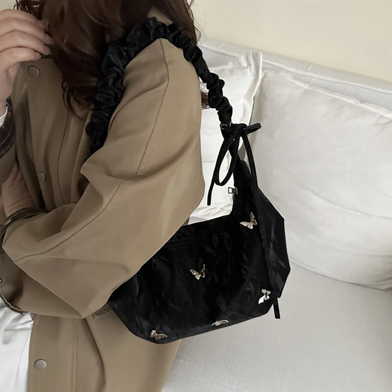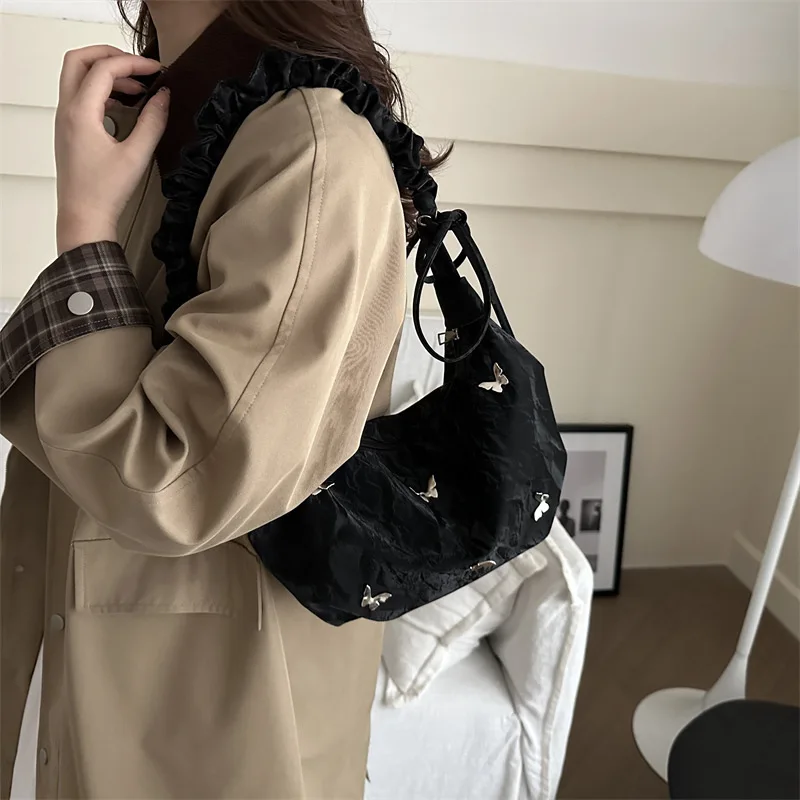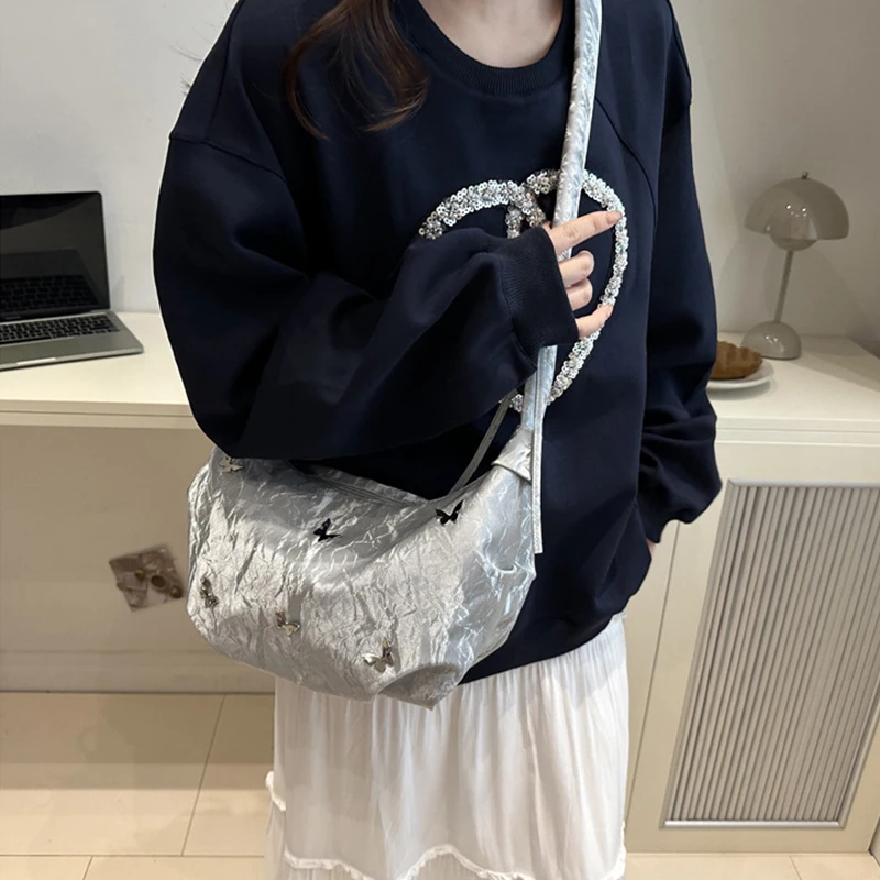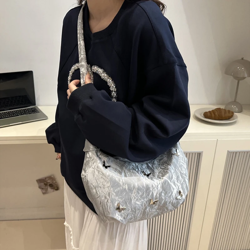 Senior Sense Of Niche Butterfly Decorative Shoulder Bag 2025 New Fashion Pleated Crossbody Bag Explosion Handbag Dumpling Bag