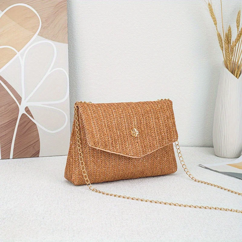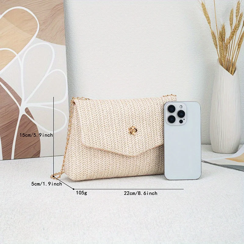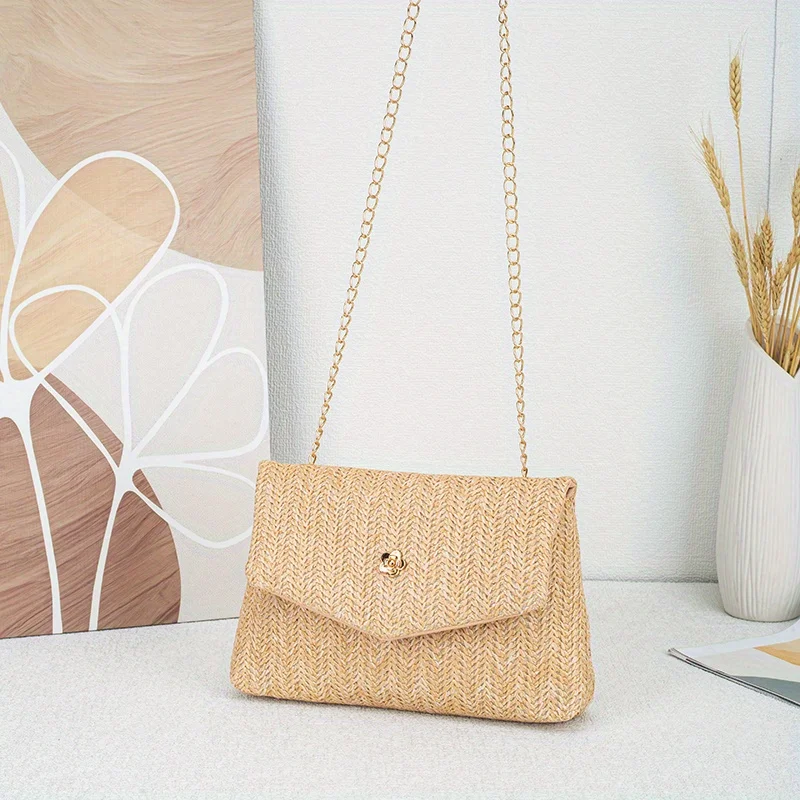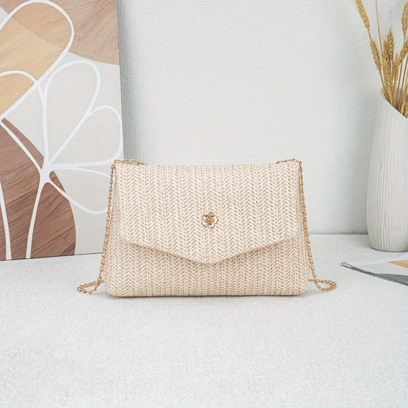 The Korean version is simple fresh and generous women's shoulder bag exquisite camellia with trendy and fashionable straw women