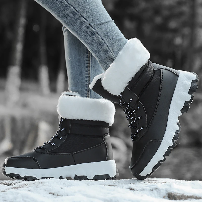 Women's Winter Fashionable Casual and Comfortable Snow Boots - Plush Lined Collar, Non-Slip, Wear-Resistant and Durable Soles, Warm Lining, Round Toe, Warm Outdoor Hiking Boots with Lace-Up Closure